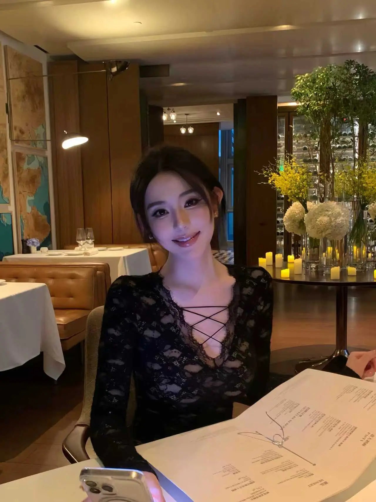 Lightweight and breathable, this black lace top is ideal for layering or wearing on its own. The long sleeves add sophistication, while the carefully placed cut-out details introduce a bold yet tasteful edge. Whether styled as an inner layer under a blazer or paired with tailored pants or a skirt, it transitions effortlessly from dinner settings to late-night outings.