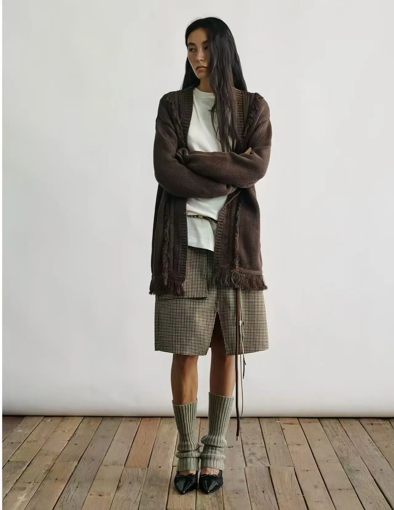 What sets this top apart is its innovative fabric blend. It combines 46% cotton with Lyocell and cellulose fiber. This creates a "paper-yarn" texture that is lightweight and breathable. It offers a natural drape that flatters the body. The standout feature is the playful fringe detailing. It adds movement and an artistic touch. This cardigan feels as unique as it looks.