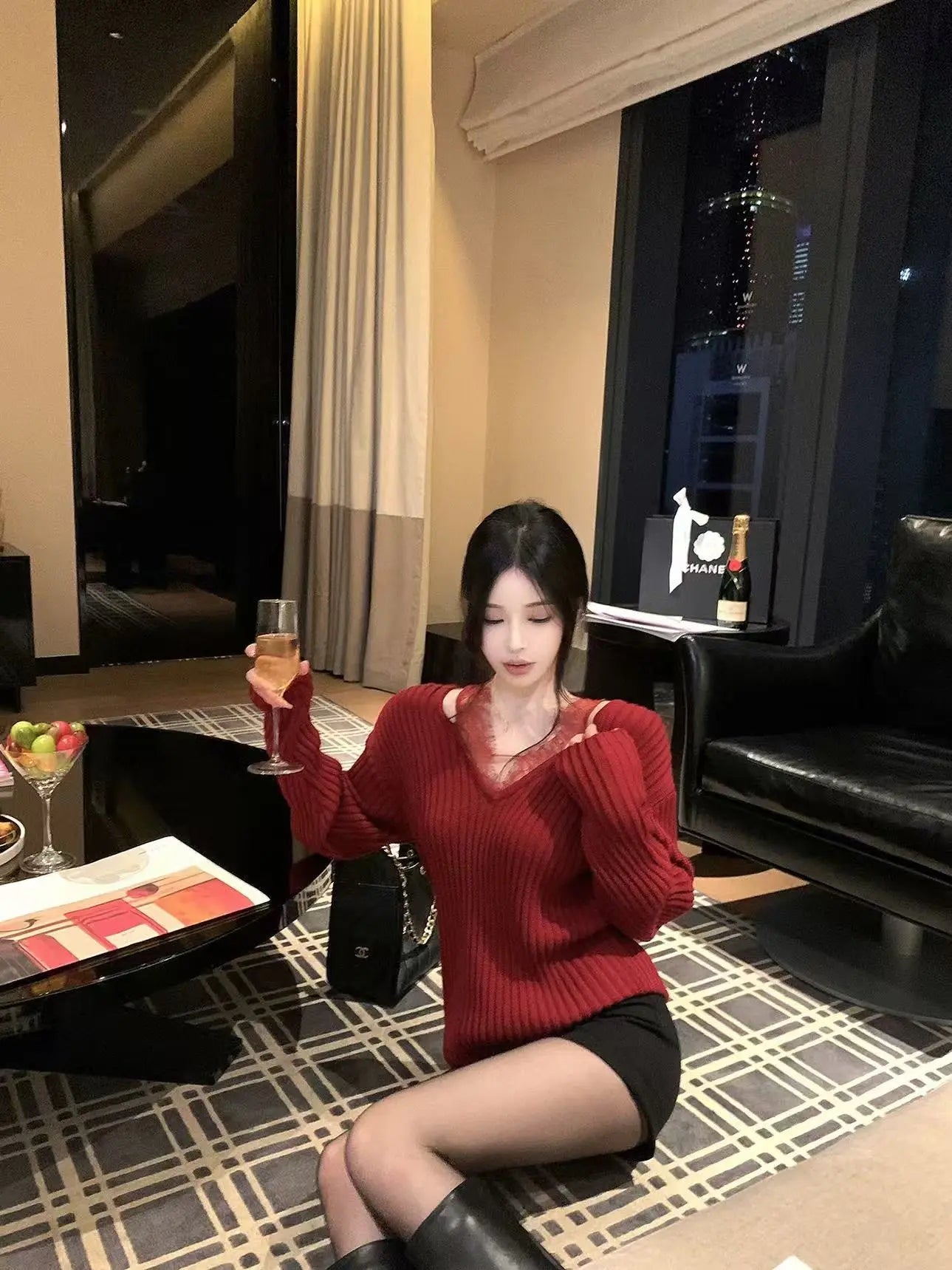 lace trim top A refined blend of elegance and comfort, this ribbed V-neck knit top features a delicate lace insert that frames the neckline for a romantic, feminine touch. The relaxed silhouette drapes effortlessly, offering both warmth and style for everyday wear or elevated occasions. Designed with a soft texture and subtle stretch, it brings a sophisticated yet easygoing charm to your winter wardrobe.