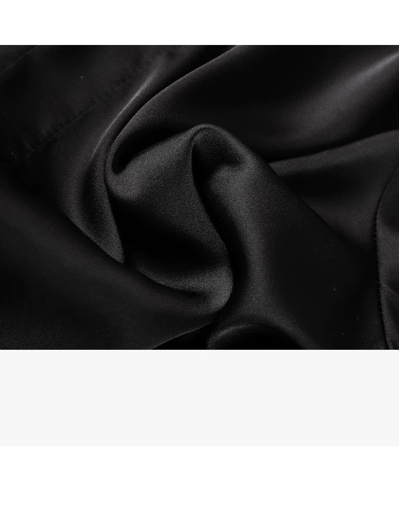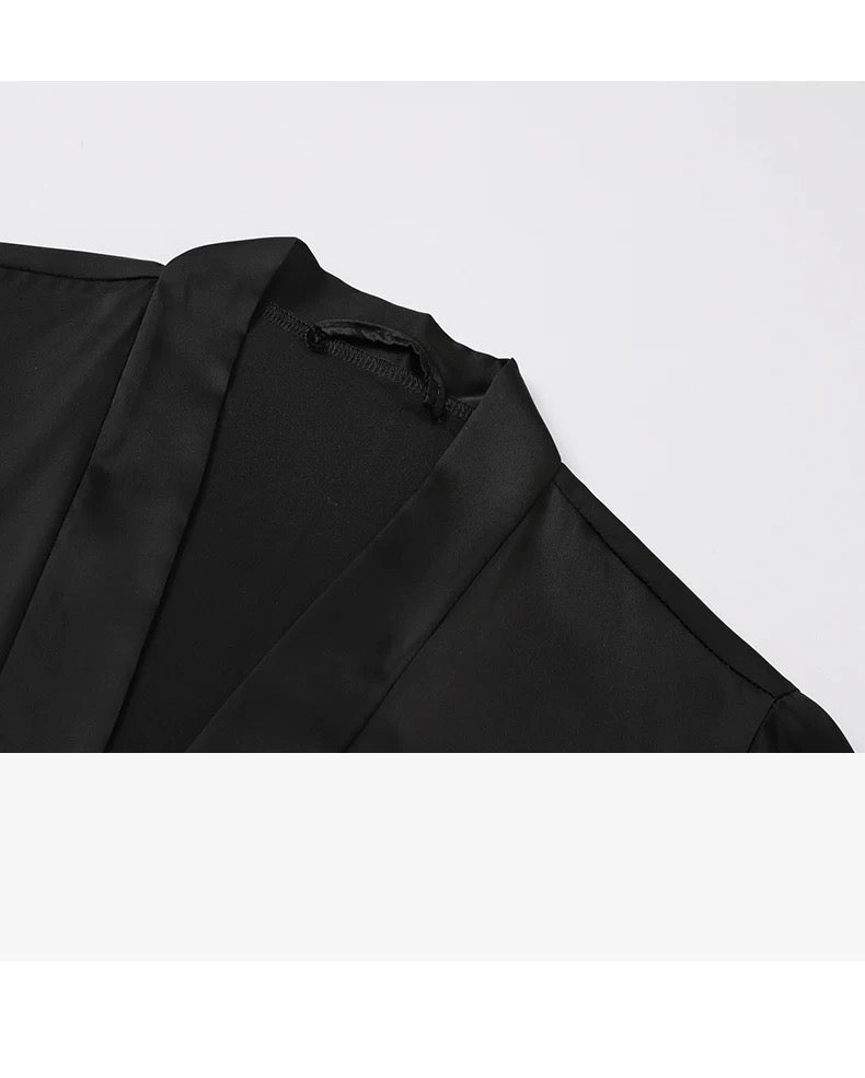 Make a bold and elegant statement in the Noir Lace Sleep Set — a two-piece satin ensemble that combines timeless black with soft ivory lace accents. This luxurious set includes a silky robe and a matching nightdress, both detailed with contrast floral lace for a seductive yet refined look. Whether you're lounging, gifting, or elevating your evening routine, this set offers comfort, allure, and a touch of mystery.