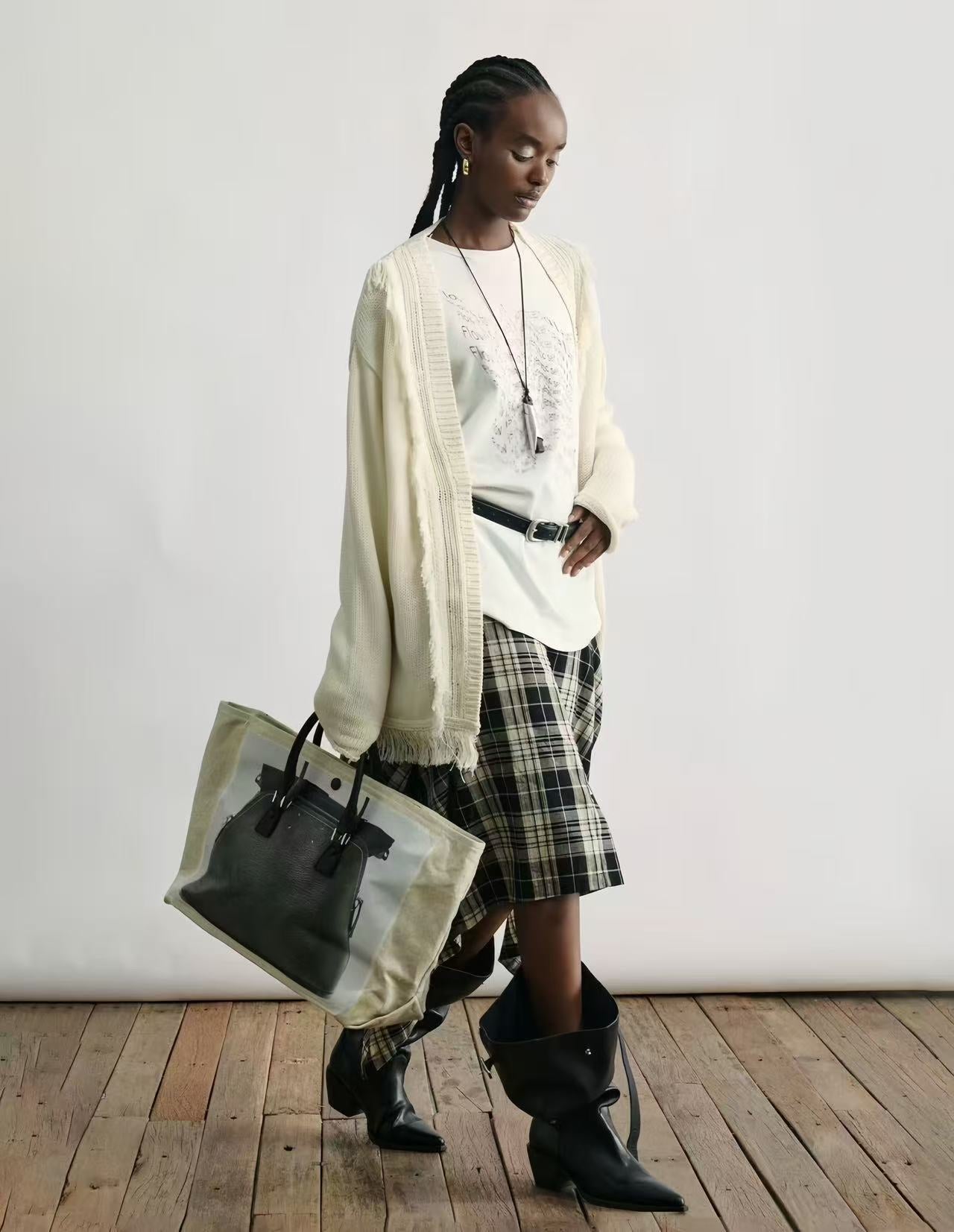 A textured openwork cardigan crafted from a unique paper-yarn blend. Structured yet lightweight, it offers natural drape, organic texture, and effortless comfort. Finished with fringe detailing for an artisanal, handcrafted look.
