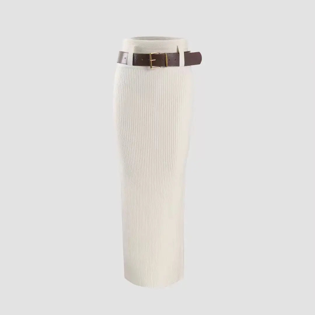 High-Waist Knit Skirt: Elongates the figure and offers a comfortable, flattering fit.