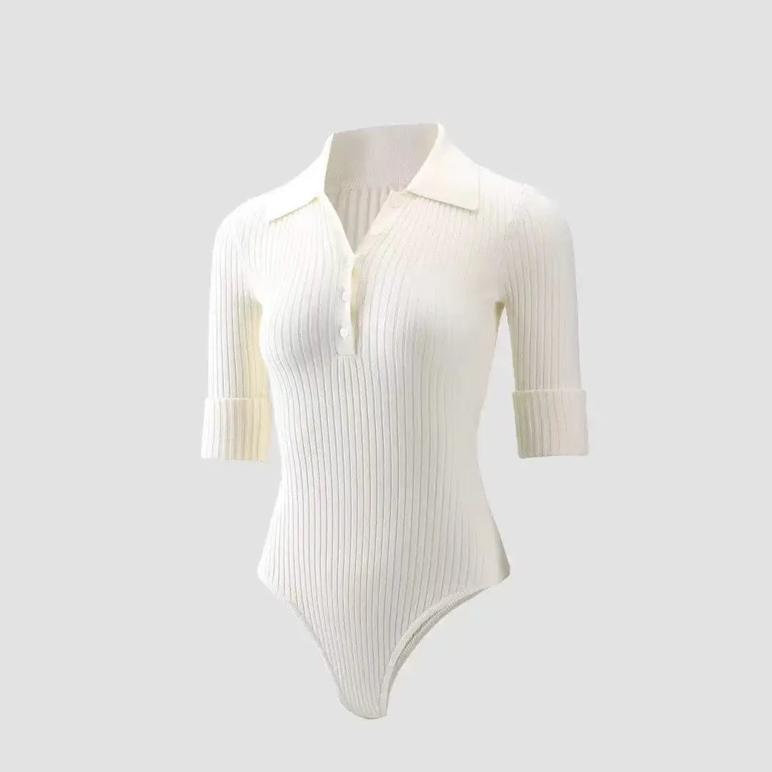 Ribbed Polo Bodysuit: Features a classic collar and a fitted cut to shape the upper body.